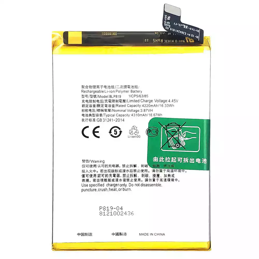 батерия BLP819 за OPPO Reno 5 4G /Reno 6 4G /F19 Pro Plus /Reno 5 Lite /Reno 5Z