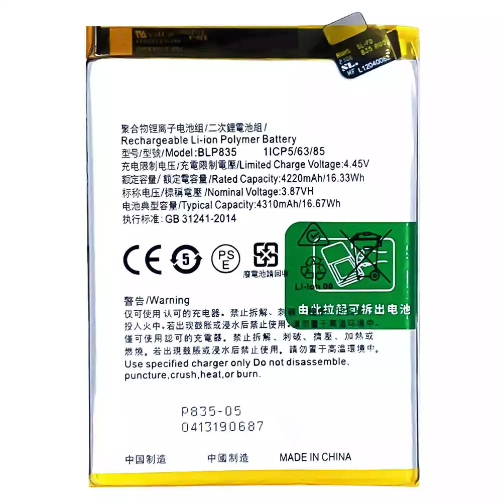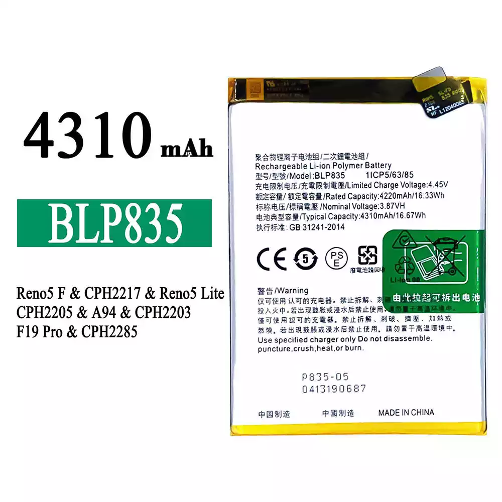 батерия BLP835 за OPPO Reno5 F /Reno5 Lite /F19 Pro /A94 4G /CPH2217 /CPH2205 /CPH2203 /CPH2285