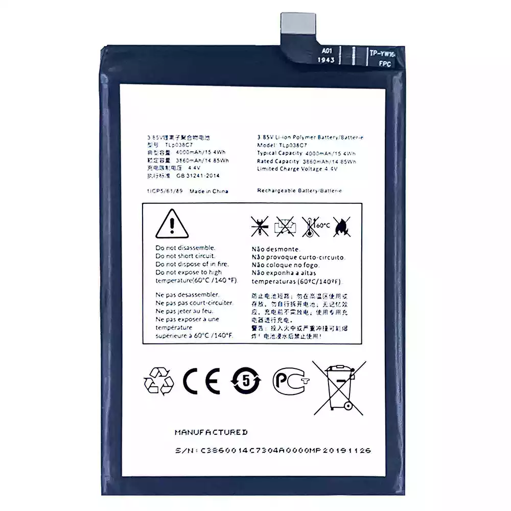 батерия TLP038C7 за Alcatel 3X 2019/5048Y/5048A/5048Y_EEA/5048I/5048U_EEA/5V/5060D/5060A/5060J